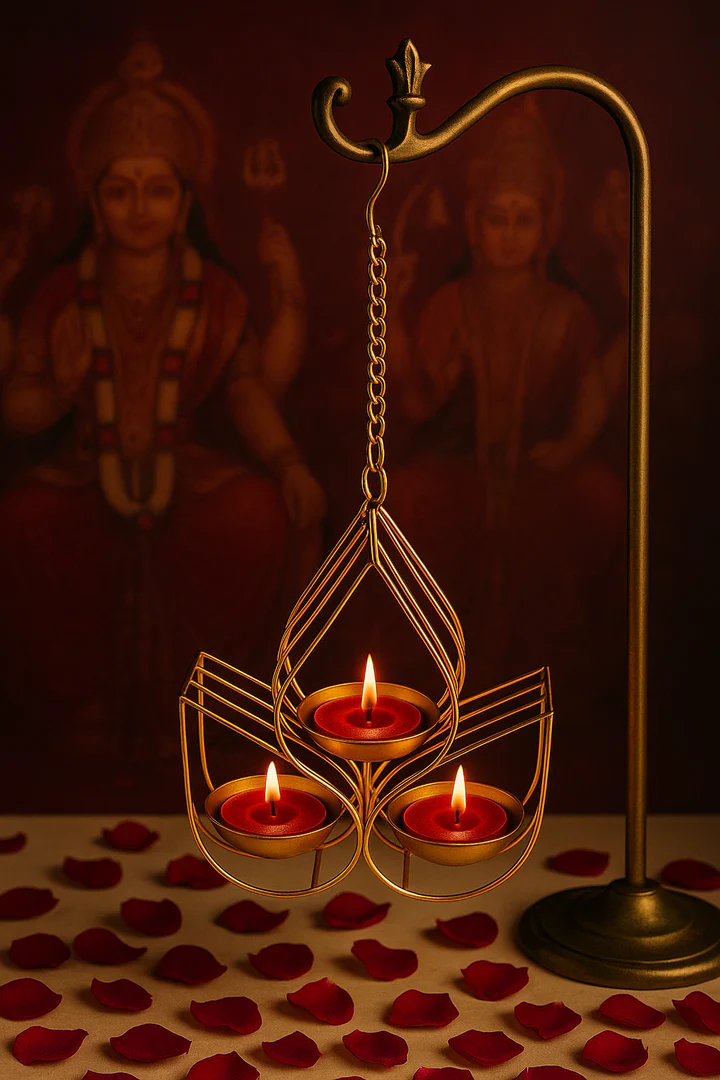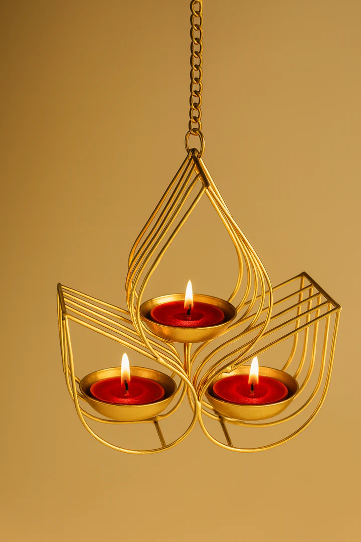 Golden Hanging Tealight Candle Holder – Lotus Design Metal Decor