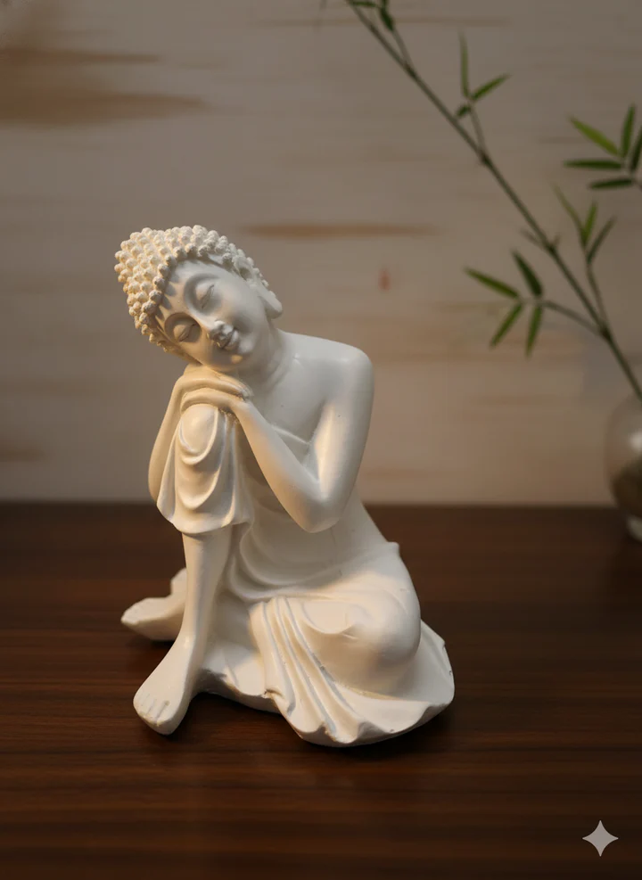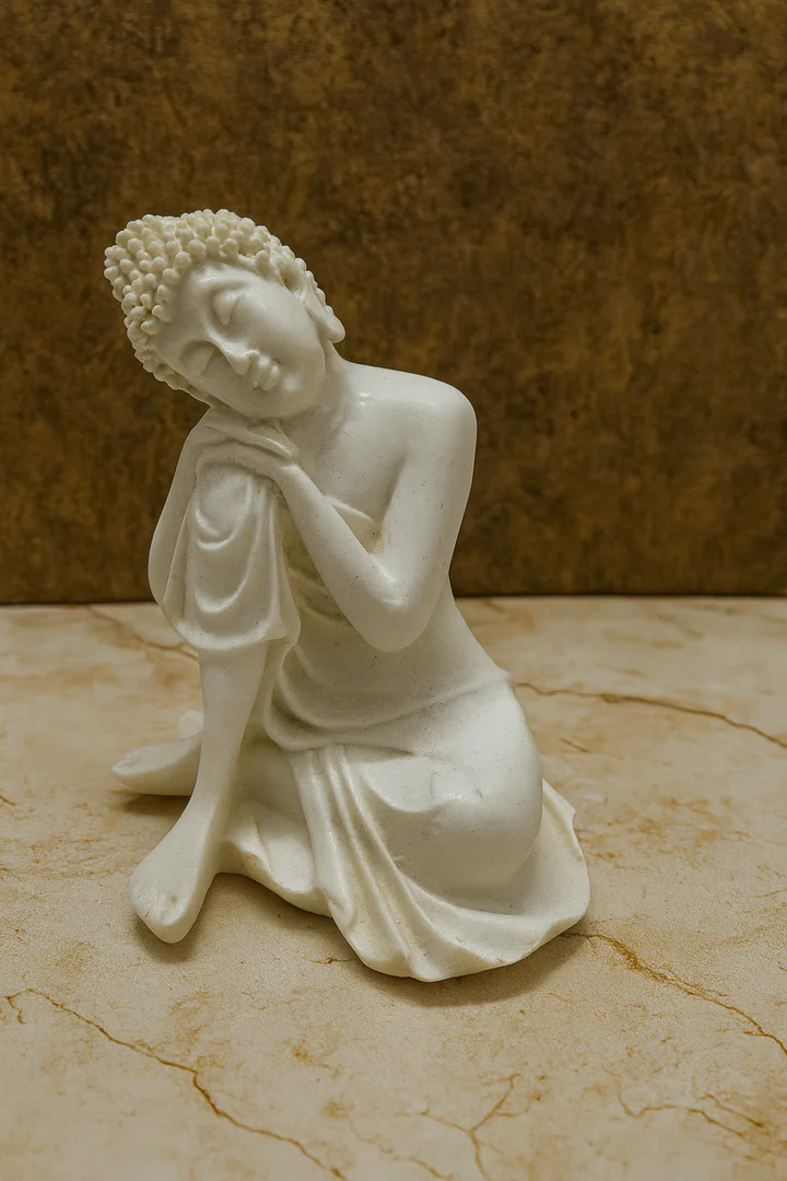 Resting Buddha Idol – Peaceful White Resin Statue for Home & Office Decor